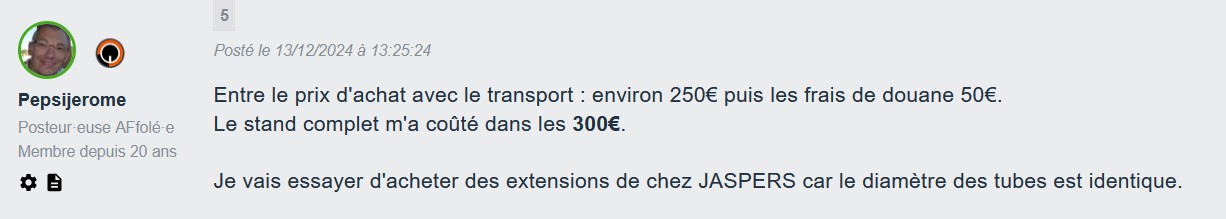 3 messages ont été scindés en un nouveau sujet : Accessoires JASPERS compatibles avec les stands TITANIUM RACKS : retour d’expérience
